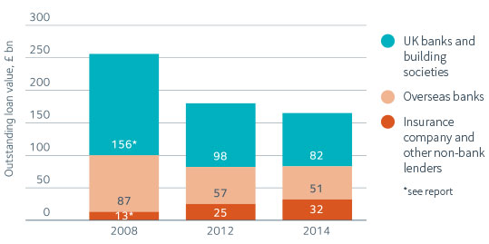 UK banks and building societies were traditionally the principal lenders but their dominant position has been rapidly eroded in the years since the financial crisis. They now account for only 39% of new lending and half the value of outstanding loans.