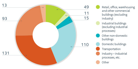 Domestic buildings and transportation are by far the largest emitters of CO2 in the UK.