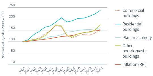 Since 2000, the value of the UK’s commercial property stock has grown at an annualised rate of 3.2%, slightly ahead of inflation.