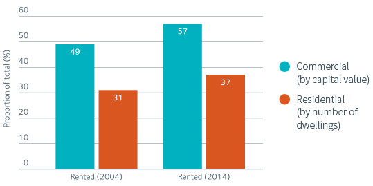 The proportion of commercial property that is rented has stabilised since the late 2000s downturn in the economy.